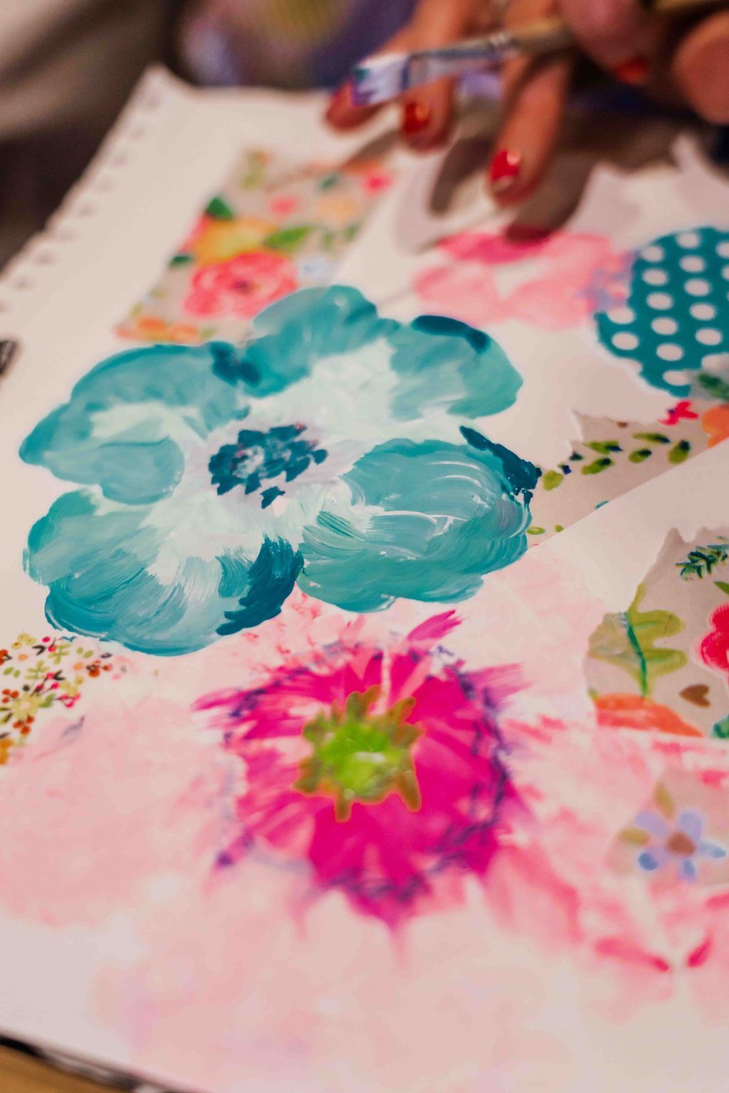 A mindful event that involved painting a range of beautiful flowers provided by local florist The Secret Florist and eating beautiful cupcakes made by a local young baker Harriets Bakes